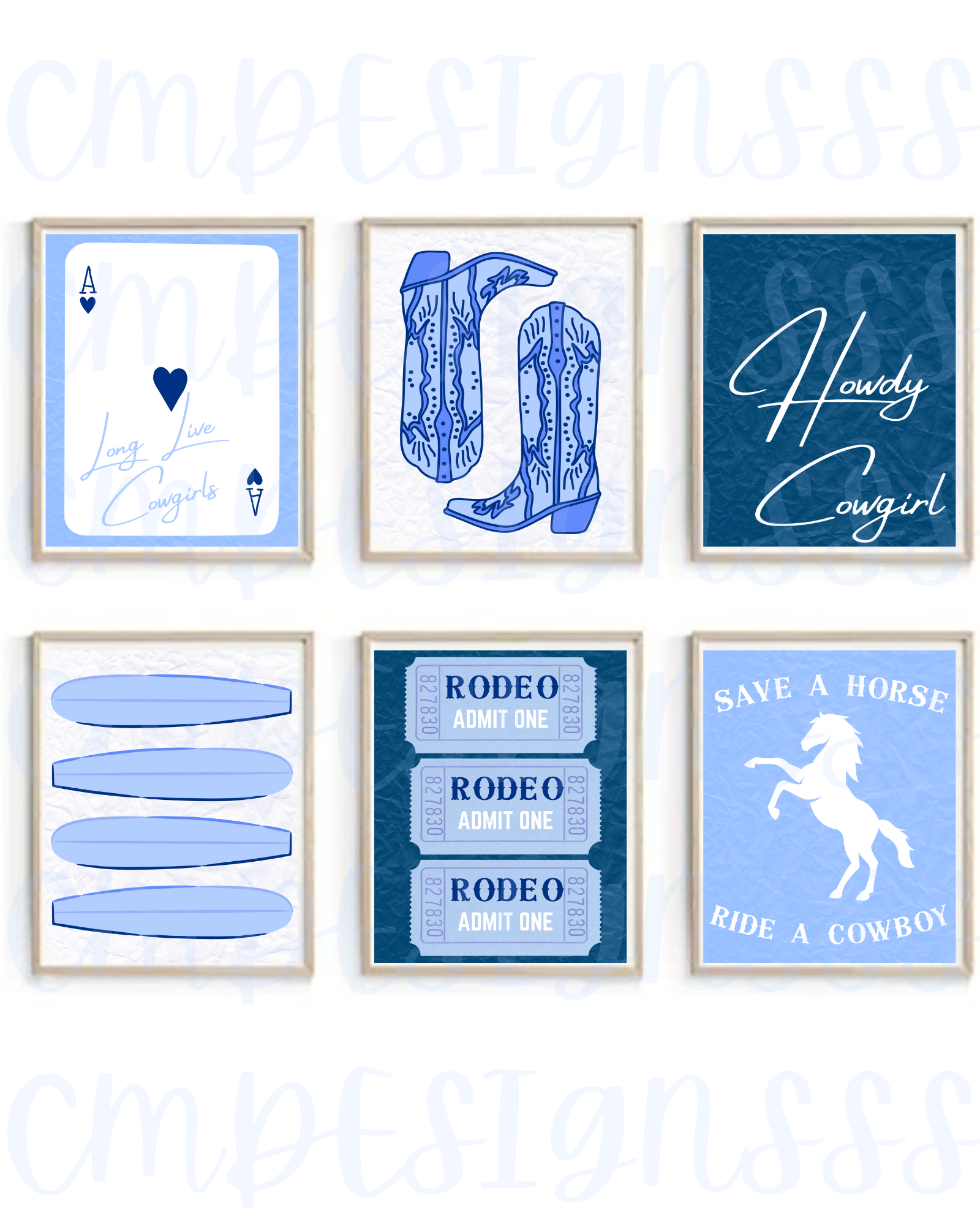 Embrace the coastal cowgirl spirit with our Blue Coastal Cowgirl Digital Wall Prints, available for instant download to enhance your apartment or dorm decor. This set of six 8x10 prints features a charming blend of navy blue and white, adorned with cowgirl boots and surfboards for a touch of whimsy. Perfect for adding a hint of coastal flair and a dash of howdy charm to your space, these artworks curated by Coastal Grandma are sure to delight any cowgirl at heart.