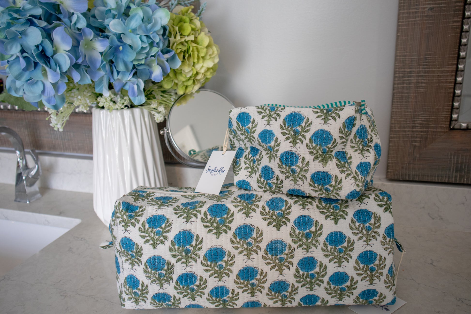 This stunning makeup bag features a beautiful blue, white, and green hydrangea block print that adds a fresh, timeless touch to your everyday essentials. Perfectly sized, it can be used as a makeup bag, toiletry case, pencil pouch, travel bag, and so much more. Crafted with both style and function in mind, it keeps your items organized while looking effortlessly chic. Its durable design ensures it’s ready to accompany you from home to travel adventures. A versatile and charming accessory, it makes a lovely gift for yourself or someone special.
