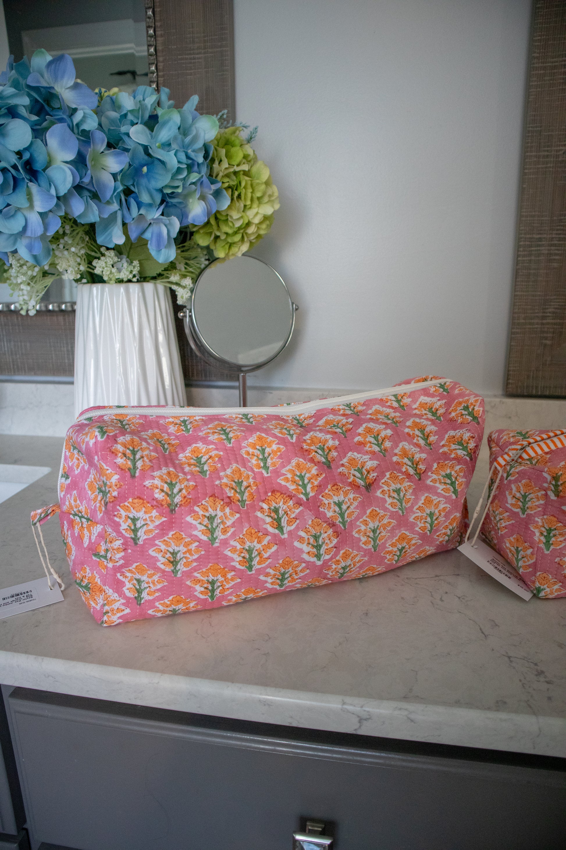 Add a pop of vibrant color to your beauty routine with the Sunset Bloom 16-inch hair tools bag, featuring a striking pink and orange block-print floral design. Spacious and versatile, it’s perfect for storing full-size products, hair tools, brushes, and more — keeping everything organized and easily accessible for home or travel. Crafted with both durability and style in mind, this bag transitions effortlessly from your vanity to your suitcase. The bold, cheerful floral print adds a fresh and playful touch to your collection, making it a functional and beautiful accessory. A thoughtful gift for yourself or someone special.
