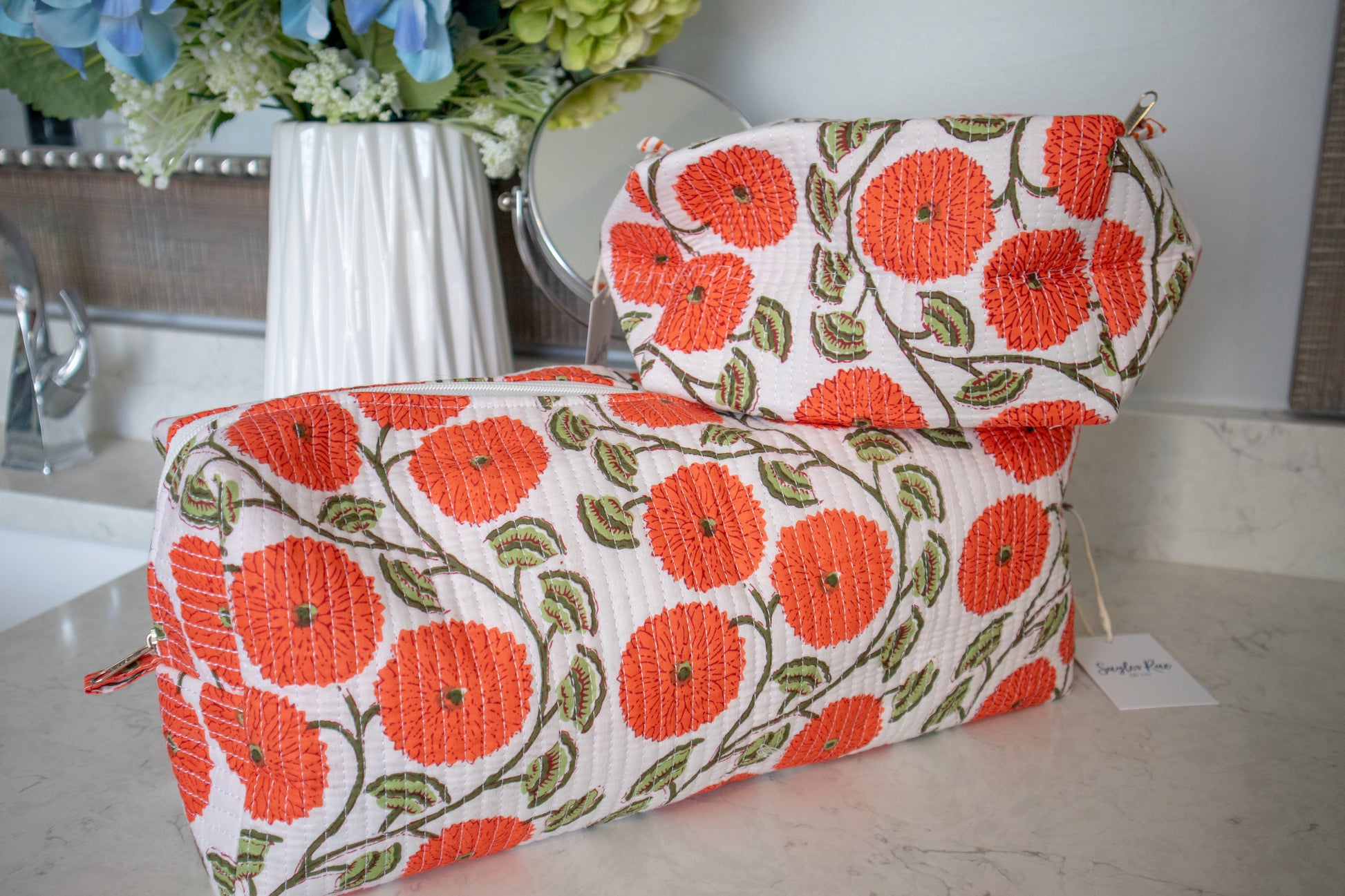 Add a vibrant touch to your beauty routine with this stunning 16-inch makeup and hair tools bag, featuring an eye-catching orange and green blossom floral print. Spacious and stylish, it’s designed to fit full-size products, hair tools, brushes, and so much more — making it the ultimate organizer for home or travel. Crafted with care and durability in mind, this versatile bag keeps your essentials neatly stored while adding a fresh, timeless accent to your collection. Whether you use it as a makeup bag, toiletry case, or travel companion, it’s perfect for keeping everything in one beautiful place. A thoughtful and practical gift for yourself or someone special.